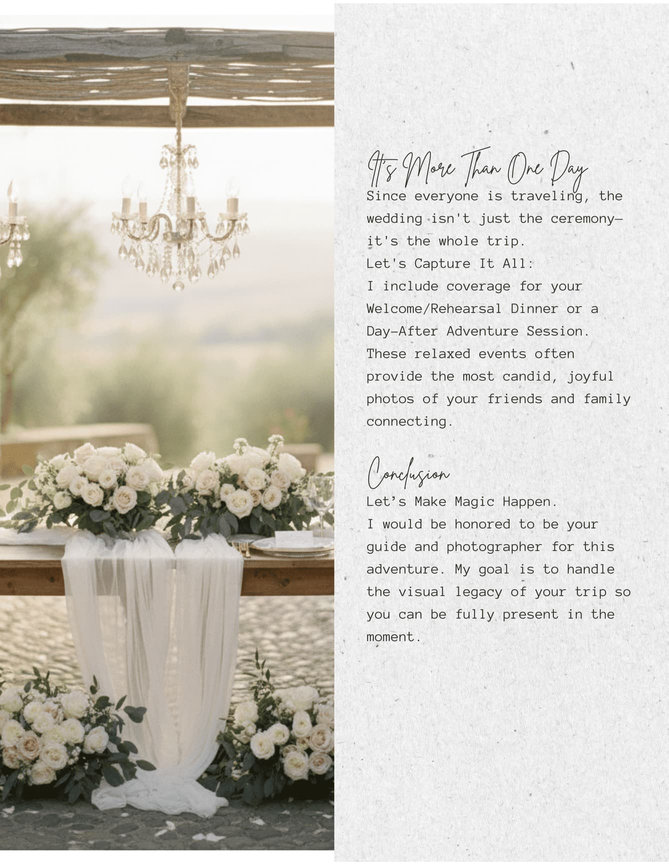- Inclusive Travel & Logistics: Your investment is all-inclusive. I manage my own travel and residency details so you can focus entirely on the celebration.